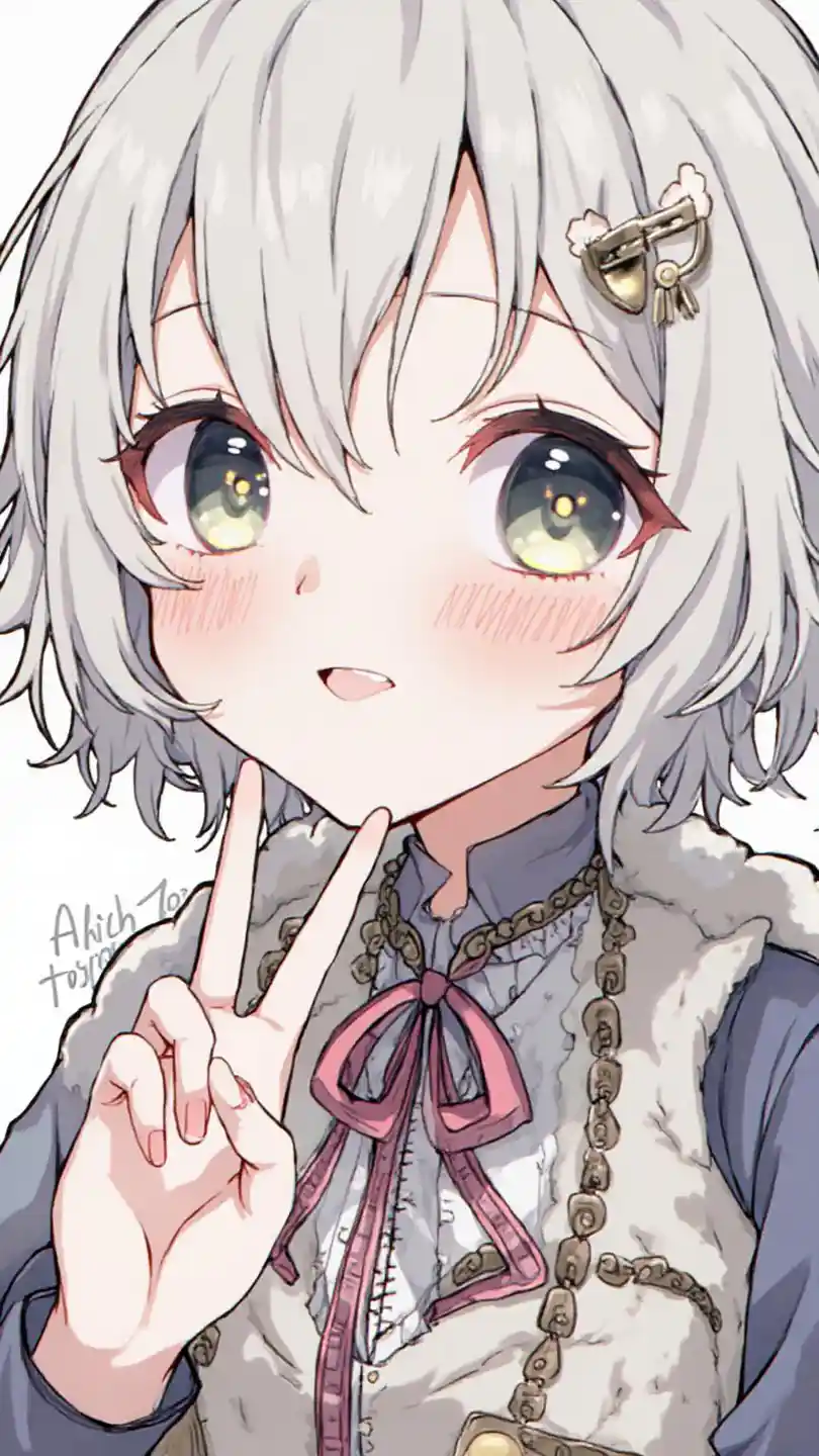 EvelynAbsa Neogal, high resolution, Super Details,High caste girls , solo, so aesthetic, highly detailed eyes, cosmetics, hand mirror), peace sign, doodle, blackboar