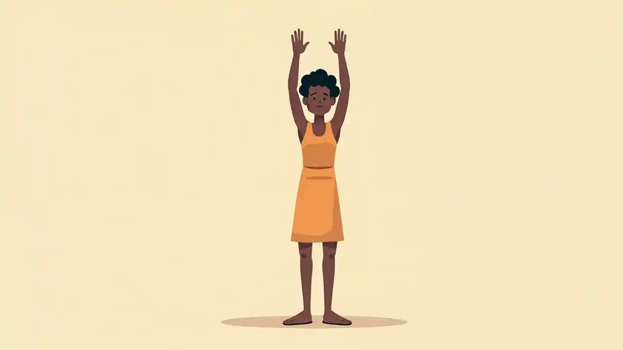 Flat illustration , no gender, simple forms, simple shapes, vector, minimalism,activist, standing, from head to toe, arms in the air, from africa