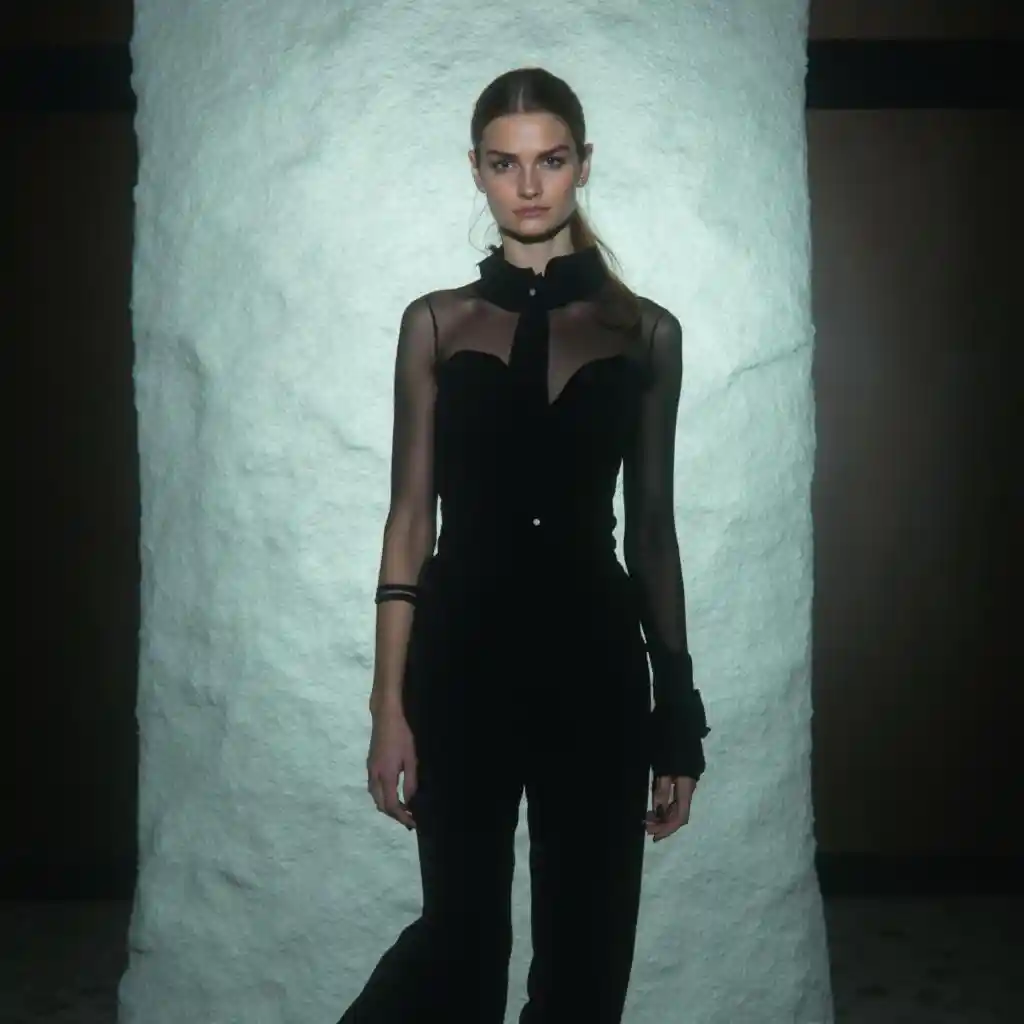 artistic editorial photography for album art cover for music Chic minimal, fashion show, electronic minimal
