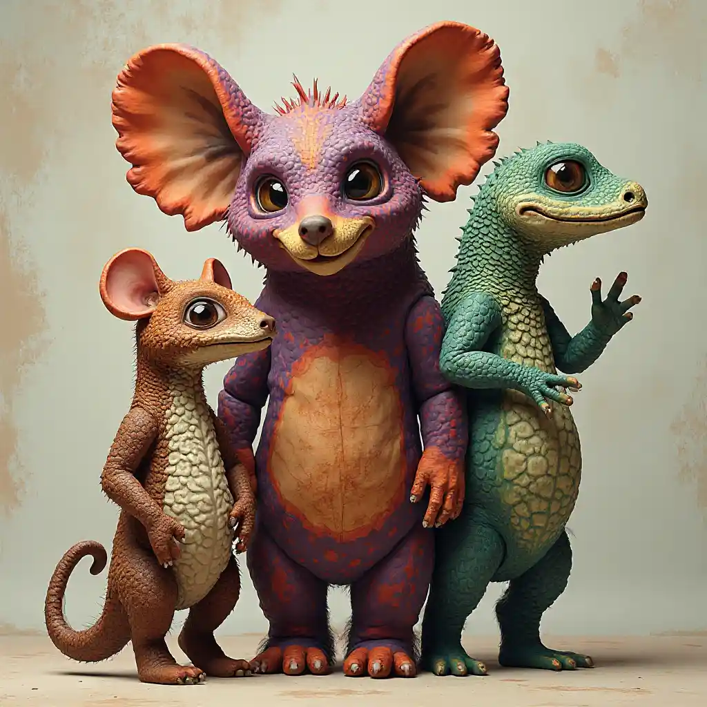 Alebrije made up of mouse bear mammoth iguana otter abega
