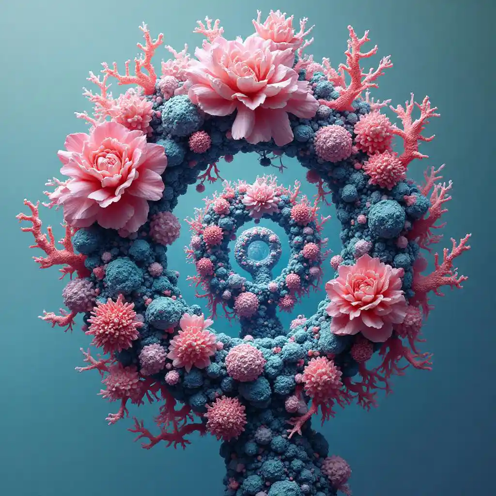 coral reefs, alien flowers spiral, futuristic, plain background, alien creature, symmetry, blossom
