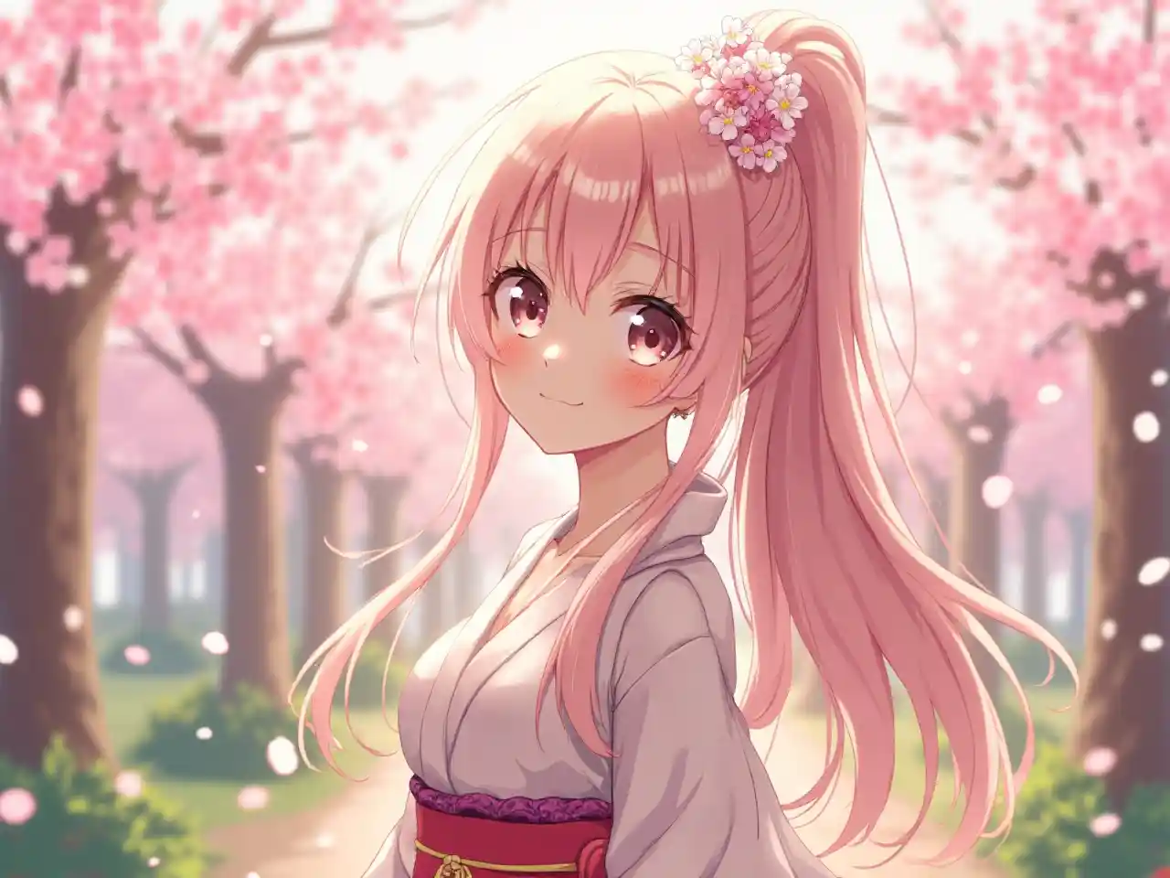 Ultra HD Anime Girl in Cherry Blossom Orchard