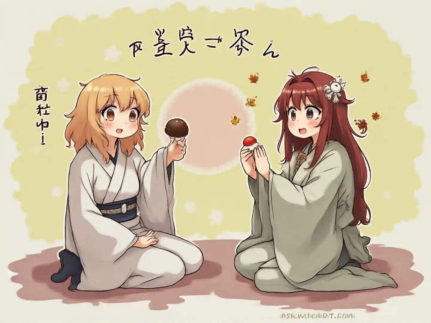 Cthulhu Mythology、「nameless kimono」and one 、Picture book touch、heartwarming、cute、Warm colors、Transparent Watercolor、Potato and yoko style