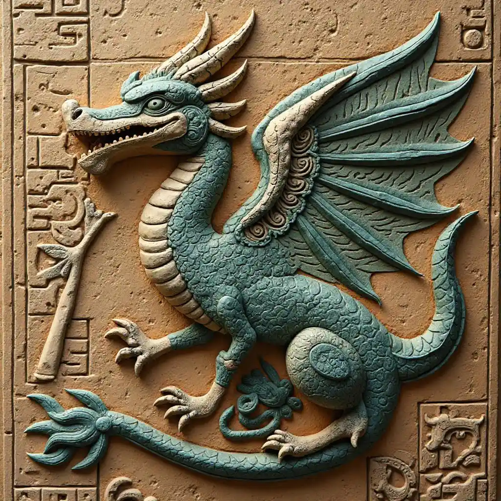 A Quetzalcoatl dragon based on Aztec stone hieroglyphic writings