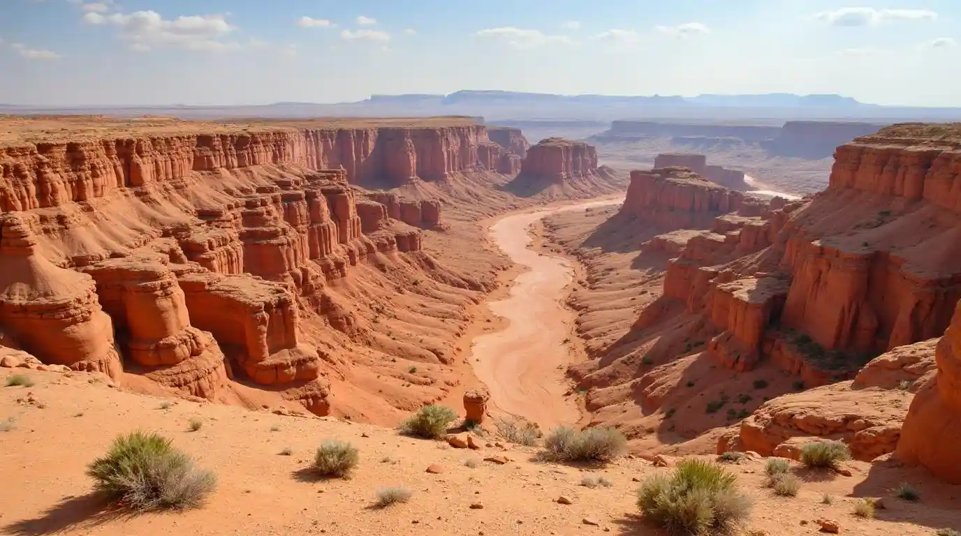 Vast terracotta badlands, sculpted by wind and water over millennia.