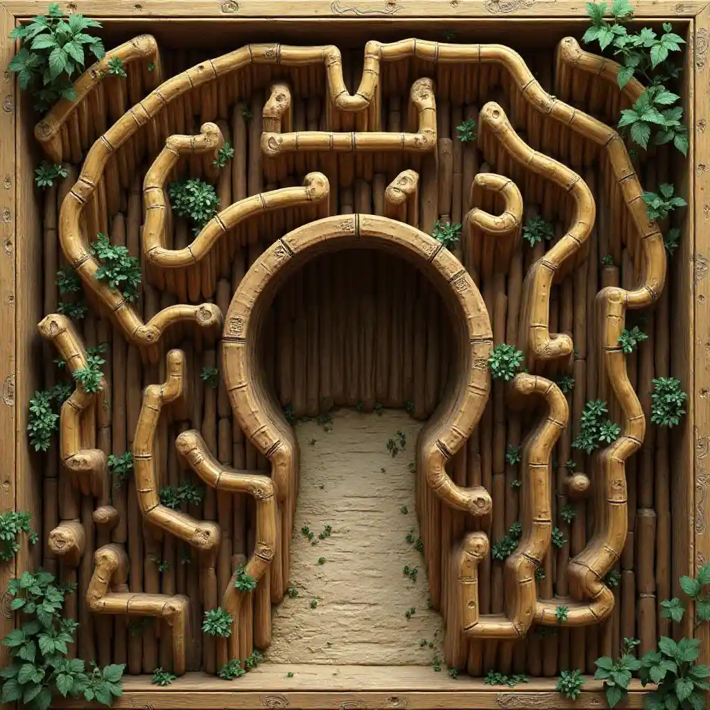 Photorealistic Bamboo Maze Plan View with Blood Door