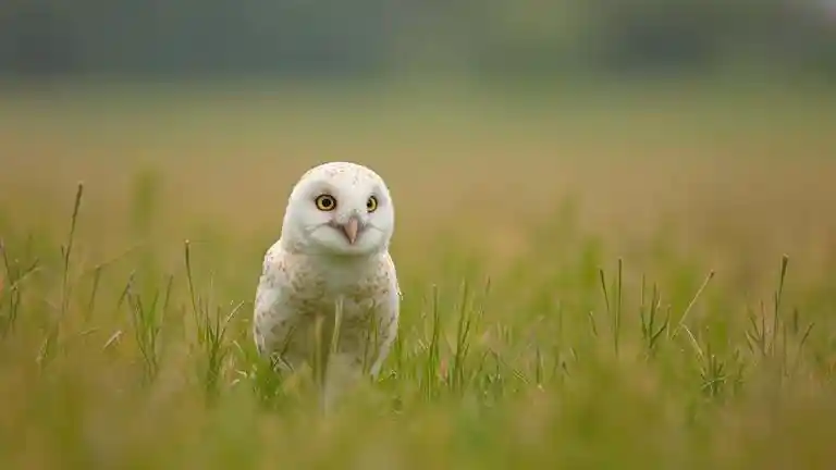LaylaThere are no people at all,complete grassland,A white young barn owl that hasn't yet grown feathers,The young barn owl appears to be running from left to right