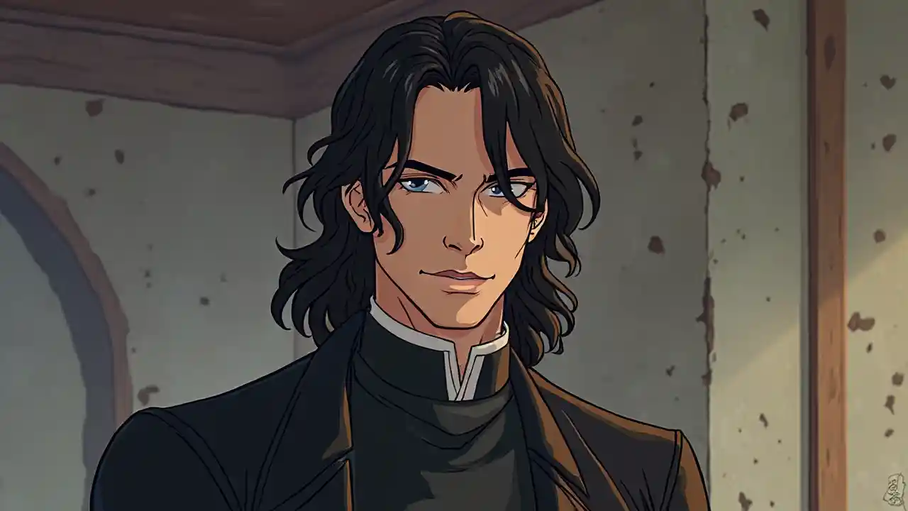Ben Barnes long hair with ranger black off Power Rangers. Realistic cartoon.