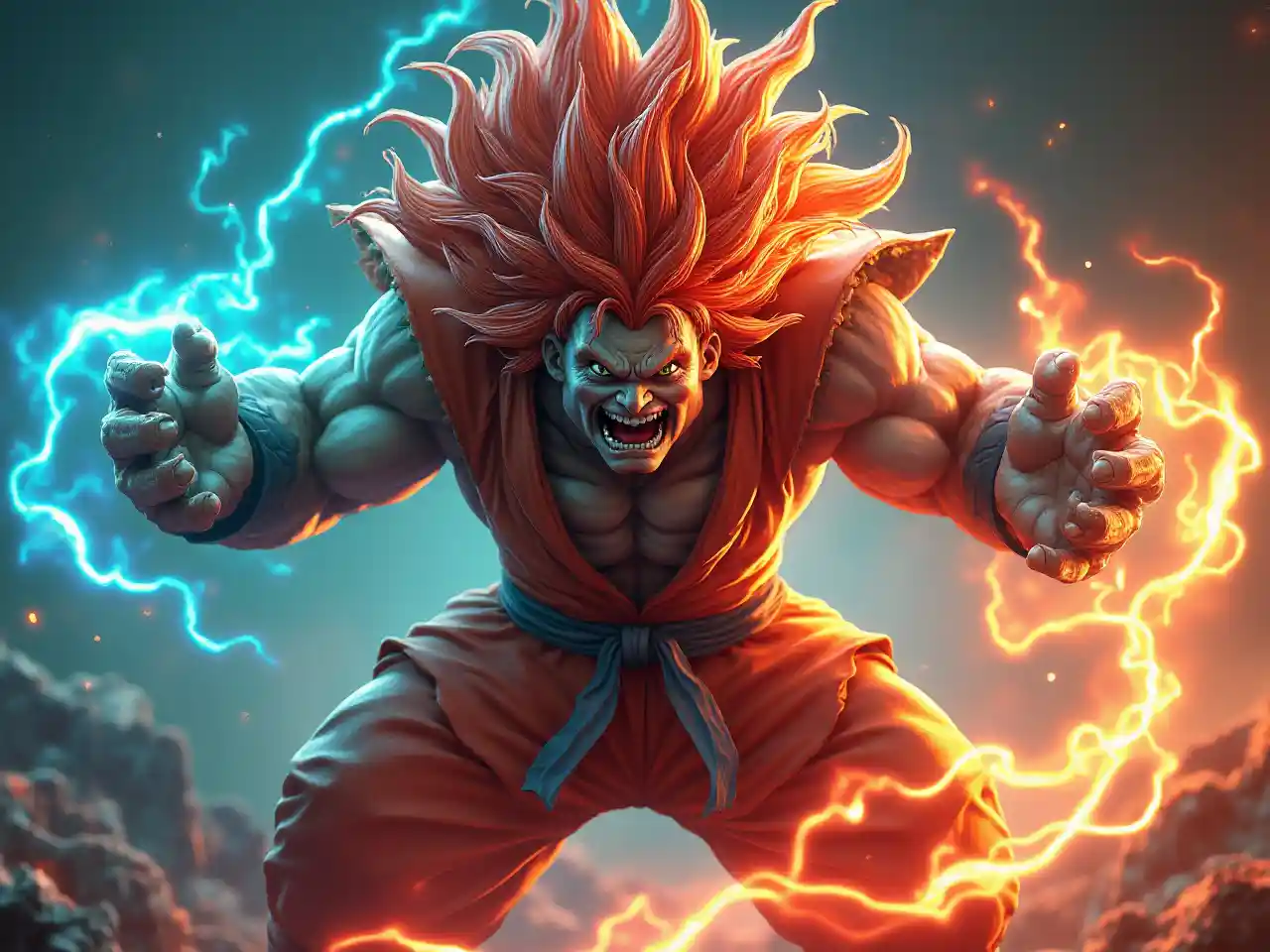 blanka from street fighter using his electric power. colorful, detailed, spiral, epic, fantastic, 8k, realistic, 3d render