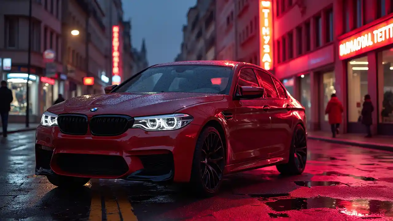 Creating a BMW M5 Competition in Paris at Night with Red Neon