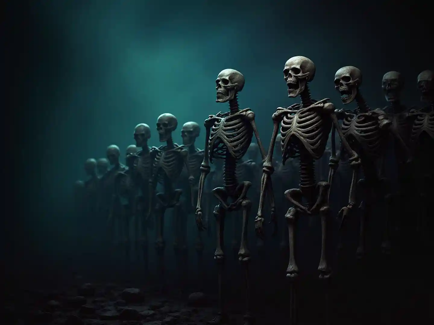 GarethBone Army, Skeleton Warrior, Undead Army, Bone Army団, dark fantasy, cinematic lighting, Dark mood lighting, dramatic shadow , Ominous Vibes , dark color, da