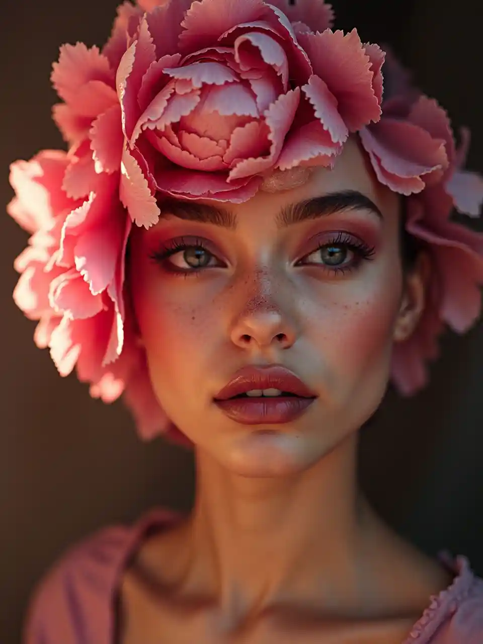 Vogue Peony Portrait with Dramatic Lighting