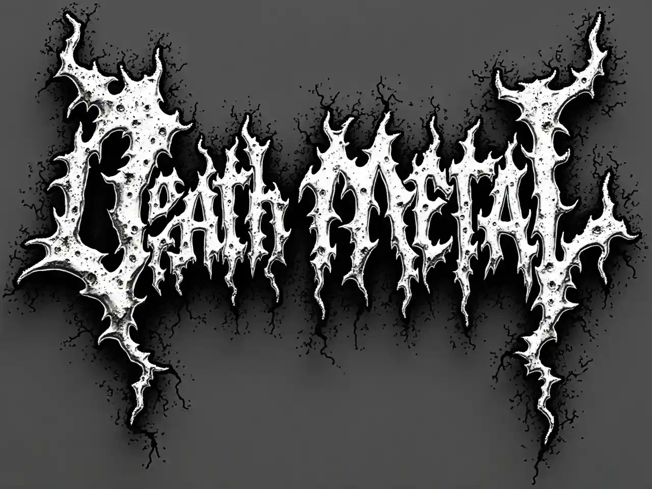 death metal band logo, black and white, brutal, illegible, spiky, horror themed
