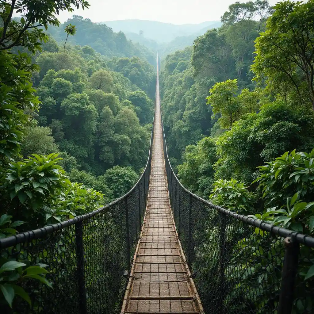 SophiaA treetop canopy walkway, offering a bird's eye view of the rainforest below.