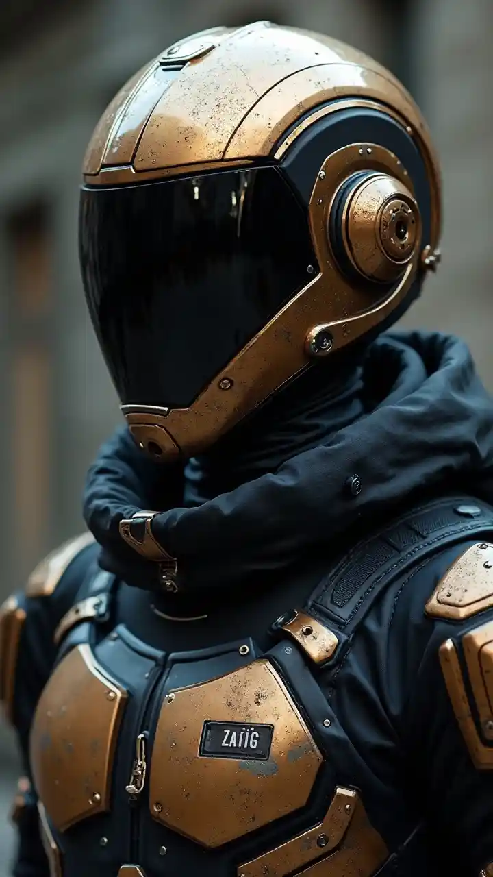 cyber Space man with bronze color dark helmet, with the name tag on chst "Captain ZAIG"