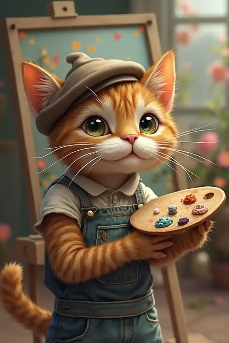 Charming Cat Artist with Palette and Beret