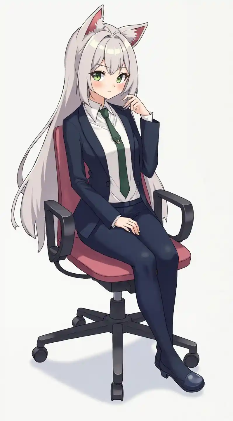 Jacksontop quality、 girl with cat ears、sitting in an office chair、suits all around