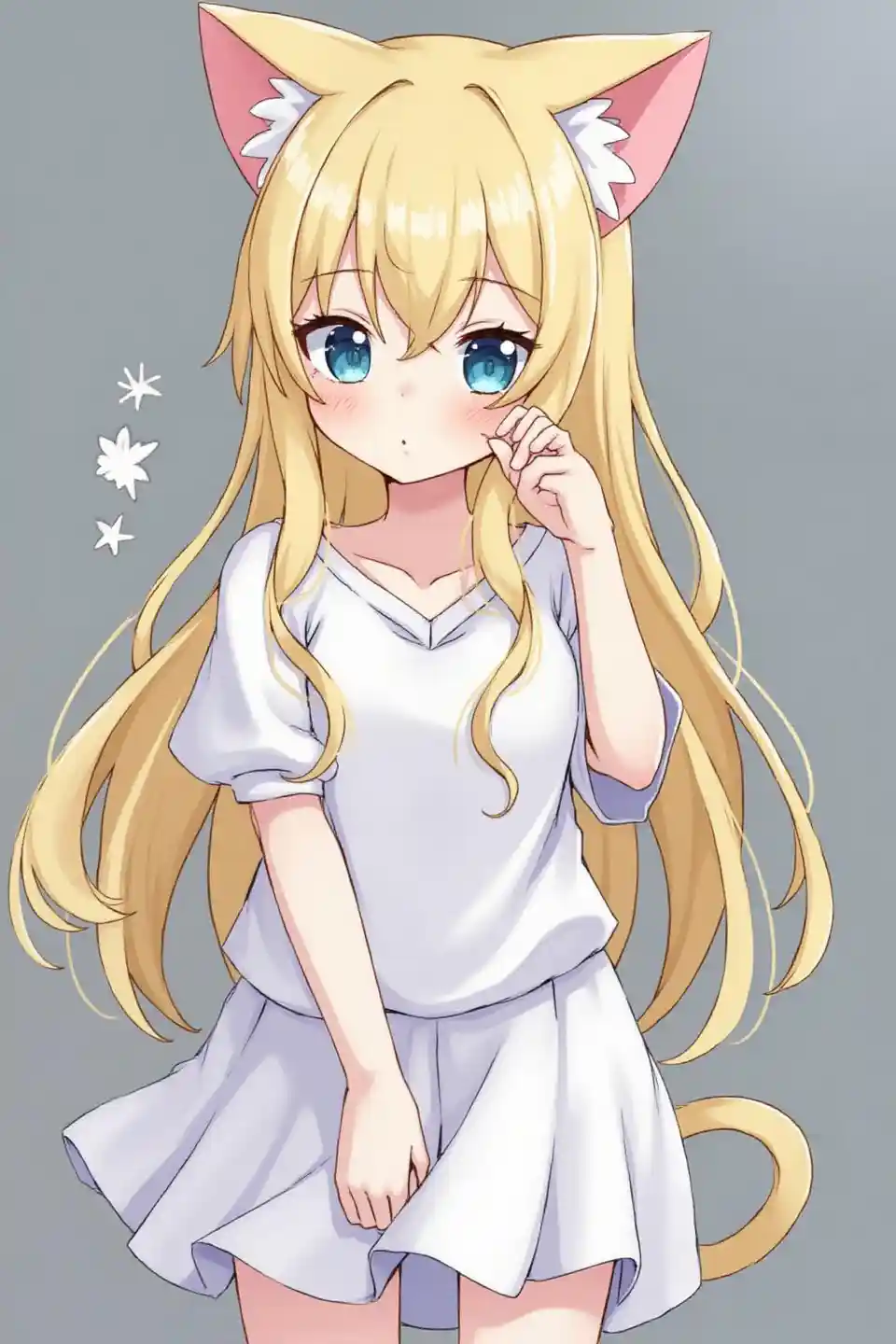 Cute Cat Girl with Golden Hair and Blue Eyes