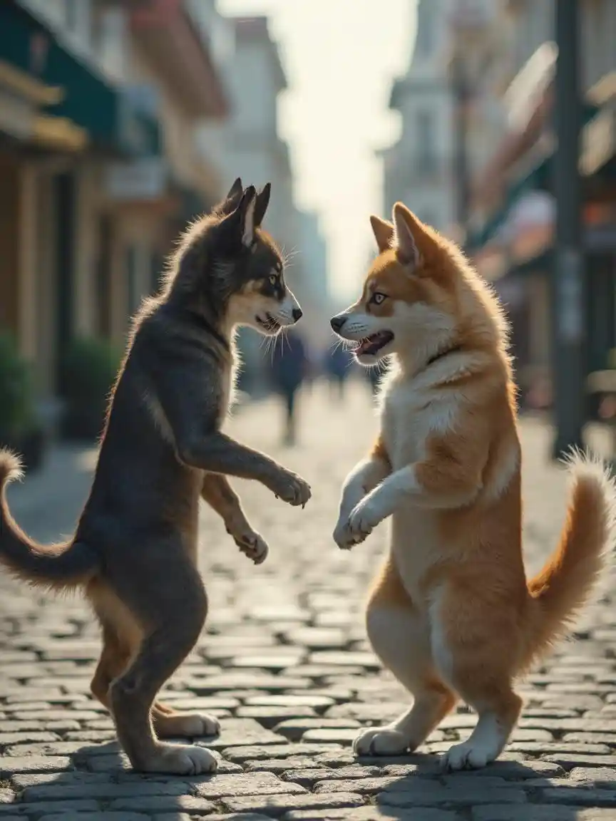 Street Fight between Cat Ears and Dog Ears Girl、planet, high quality, charming,realistic,4K,8K,ultra fine,professional,high contrast,refined,dynamic composition
