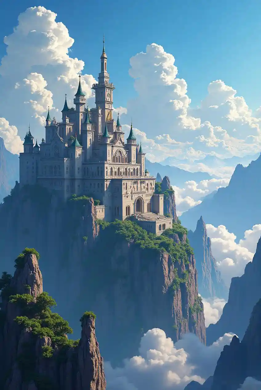 Majestic Mountain Palaces Mirroring Anime Aesthetics