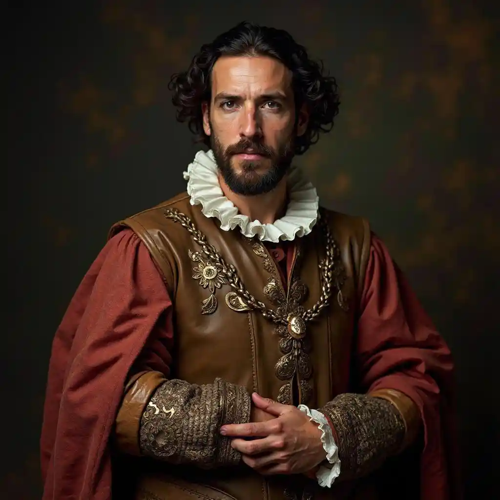 Kennedya realistic photo of miguel de cervantes with historic clothes