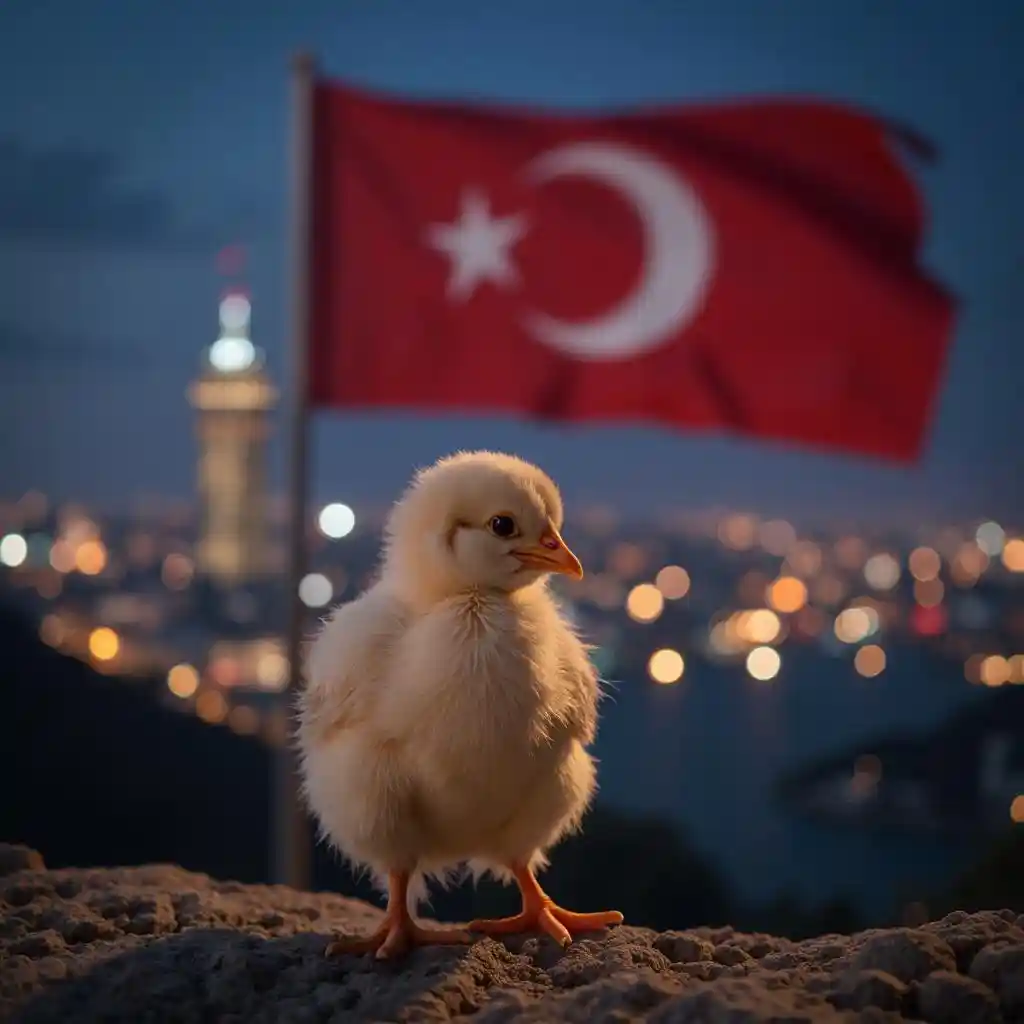 JocelynCute chick standing in front of Türkiye flag with city view at night
