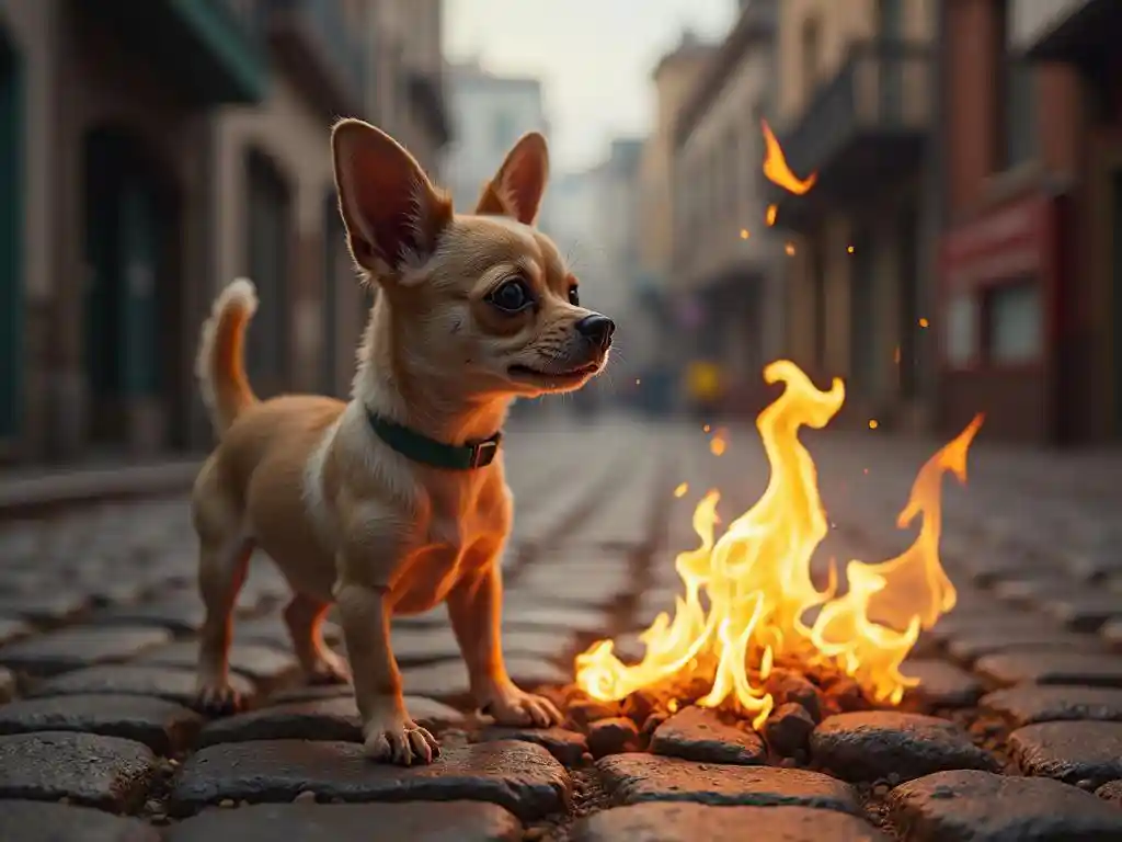 Chihuahua、Burning dog、Burned cobblestones、
