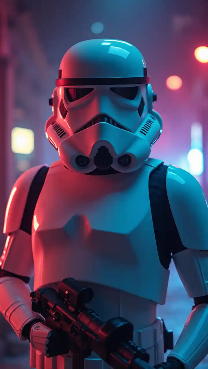 cinematic film still, Storm Trooper, colored lights, amazing quality, wallpaper, analog film grain <lora:aesthetic_anime_v1s:0.5> <lora:add-detail-xl:1.1>