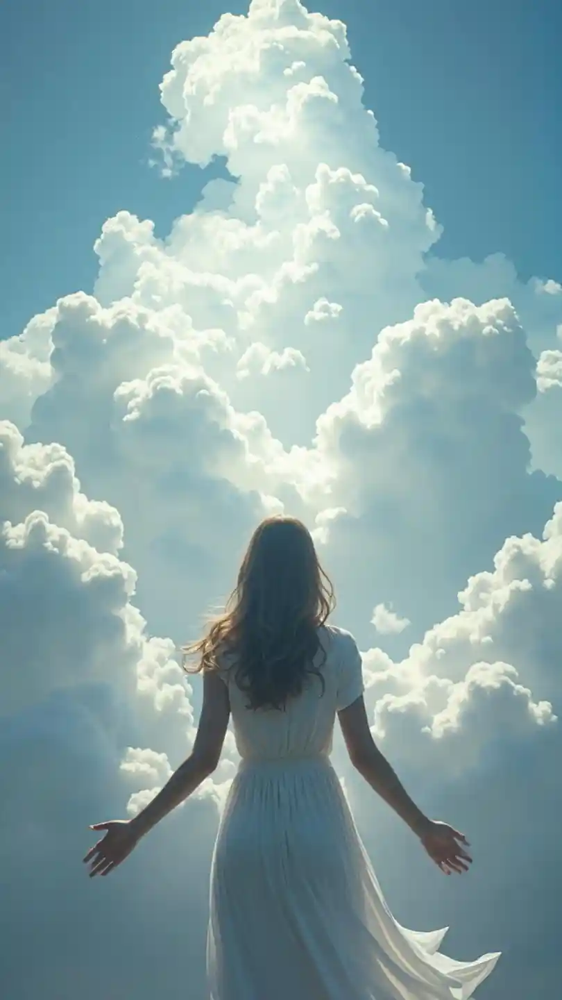 Majestic White Clouds and Woman in 4K Digital Art