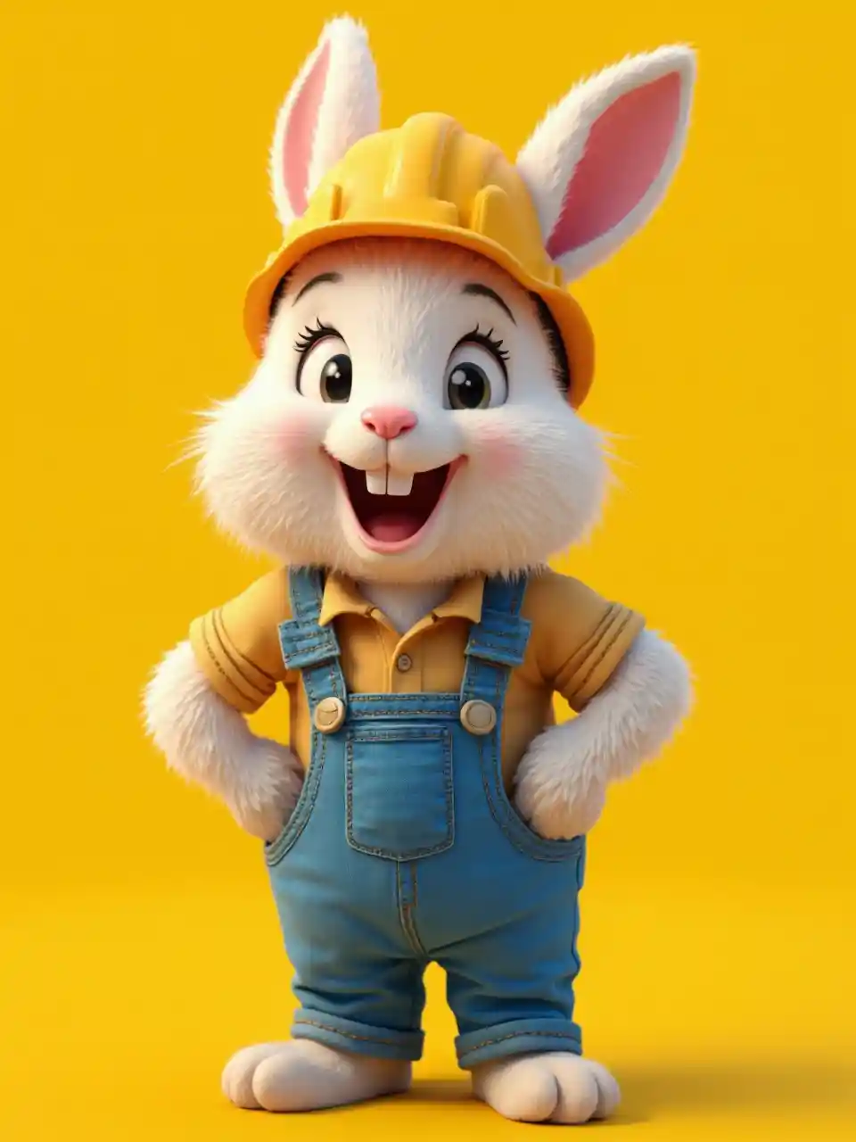 LunaHappy Bunny wearing work construction cloths , yellow background