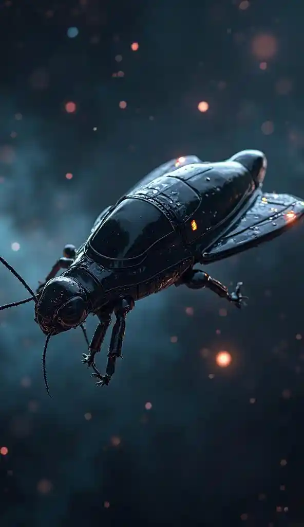 Evelynstar movement、Spaceship that flies through space、 in a spaceship、black glossy cockroach human、aliens、high image quality、masterpiece、twinkling star々、 Cosmic Spa