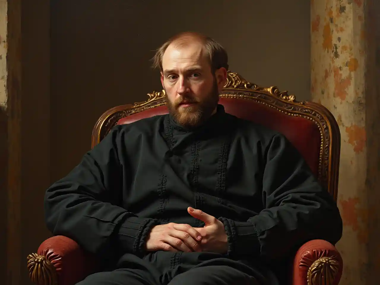 Robinlucas cranach painting, martin luther, full body portrait, sitting on a chair