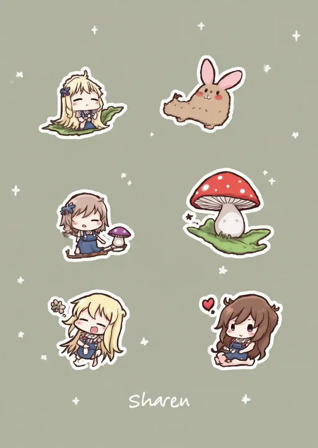minigirl, chibi, mushroom, :o, blush stickers, leaf