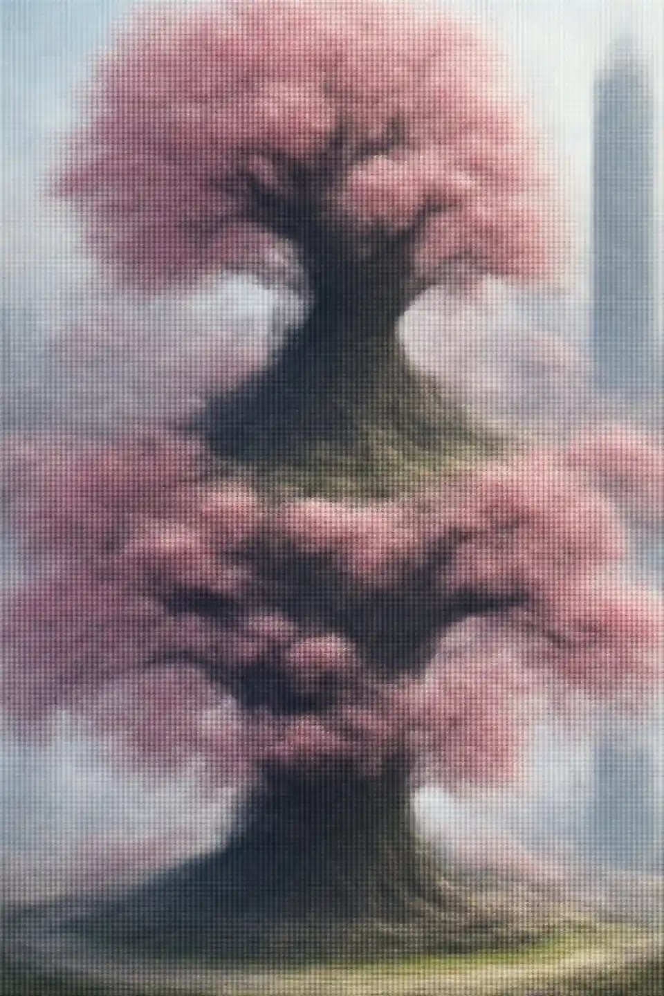 JackA large expanse of cyber city,landscape of future city,very beautiful gigantic huge mechanical tree of cherry blossom,photogenic, focus on cherry blossom,,Ameri