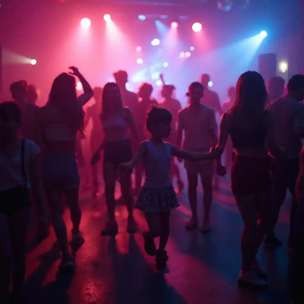 BentleyPeople dancing in a party blurred in a neon cyberpunk background