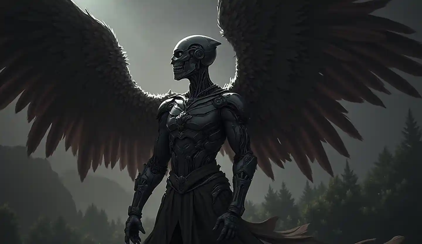 MaverickBlack-winged mechanical angel、 dark armor , high resolution, Photographic Reality, Detailed Description , professional, dramatic lighting, Mysterious Atmospher