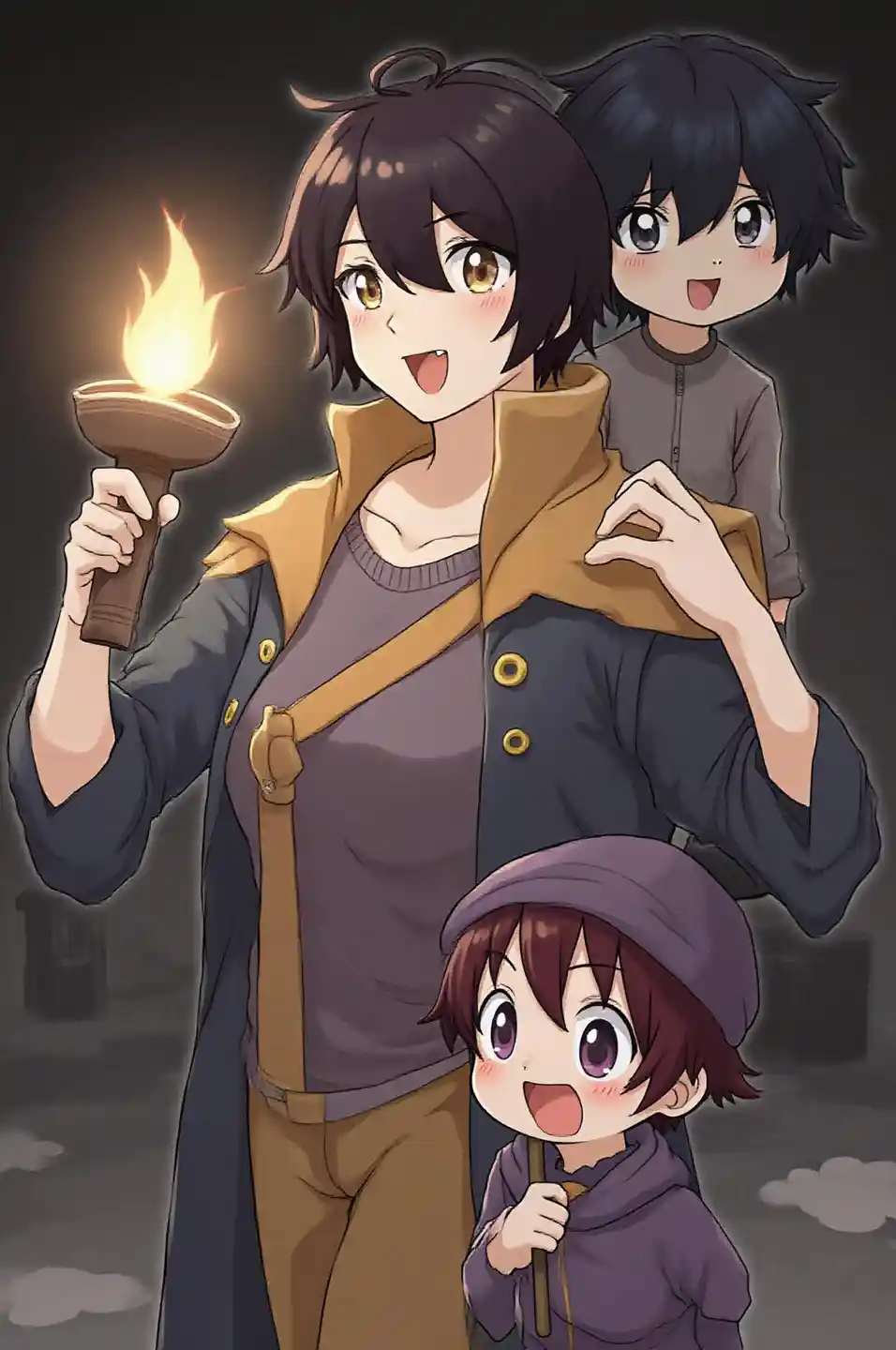 Lucas1people、solo、dungeon、 Darkness、characters、Adventurer、Holding a torch、大peopleの女性、cute、:3