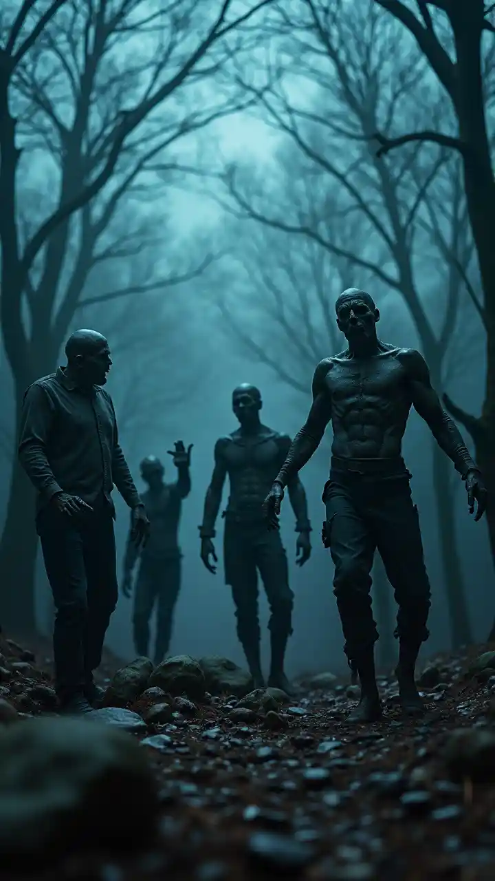 MilaNight of the living, dead deathmetal zombies in a graveyard high-quality details, deep focus, professional shot