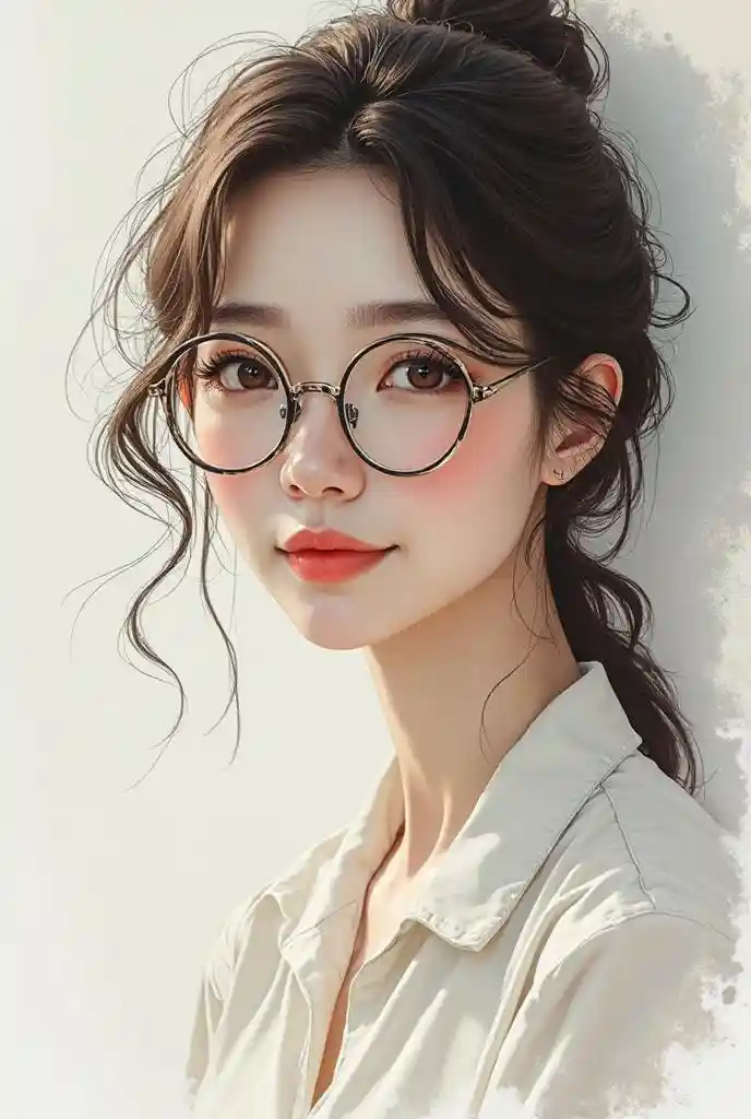 ((Best Quality、masterpiece、high sensitivity、high resolution、detailed description、Delicate Face Drawing、8K)),((Slender Woman、wearing glasses)),The perm、failed at