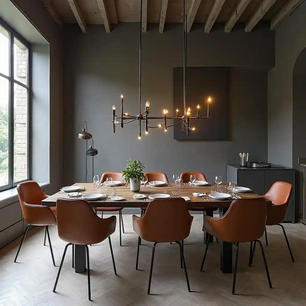 Cozy Dining Room with Wood-Metal Table & Loft Chandelier