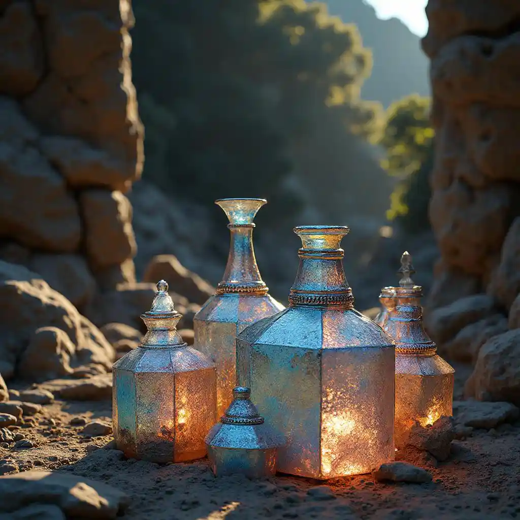 In a world of ancient ruins, we unearth a treasure beyond our wildest dreams - a divine artifact, encased in shimmering, iridescent vessels.