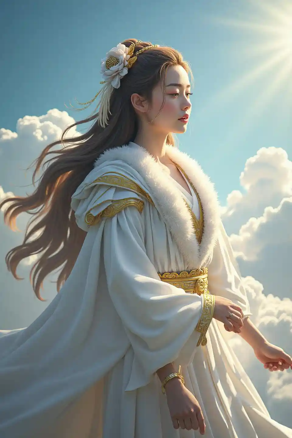 Heavenly Strongest Warrior, The final weapon that exudes overwhelming charisma,The soft-looking clouds make her even more deified,4K,8K,high res,Masterpiece, po