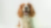 Zoelaughing cocker spaniel sitting front camera white background dog pet photography animal portrait happy photogenic