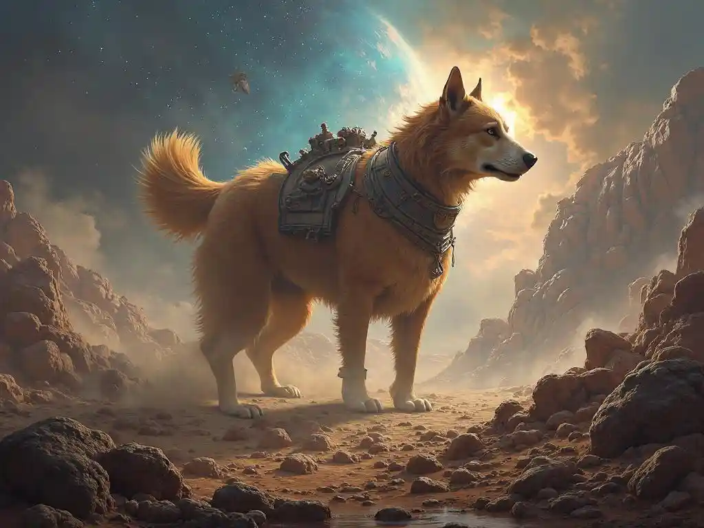 LunaFantasy-style (epic intergalactic warfare:1.5), featuring the ongoing battle between DogPlanet and CatNation in a sprawling cosmic battlefield. Massive dog-shap