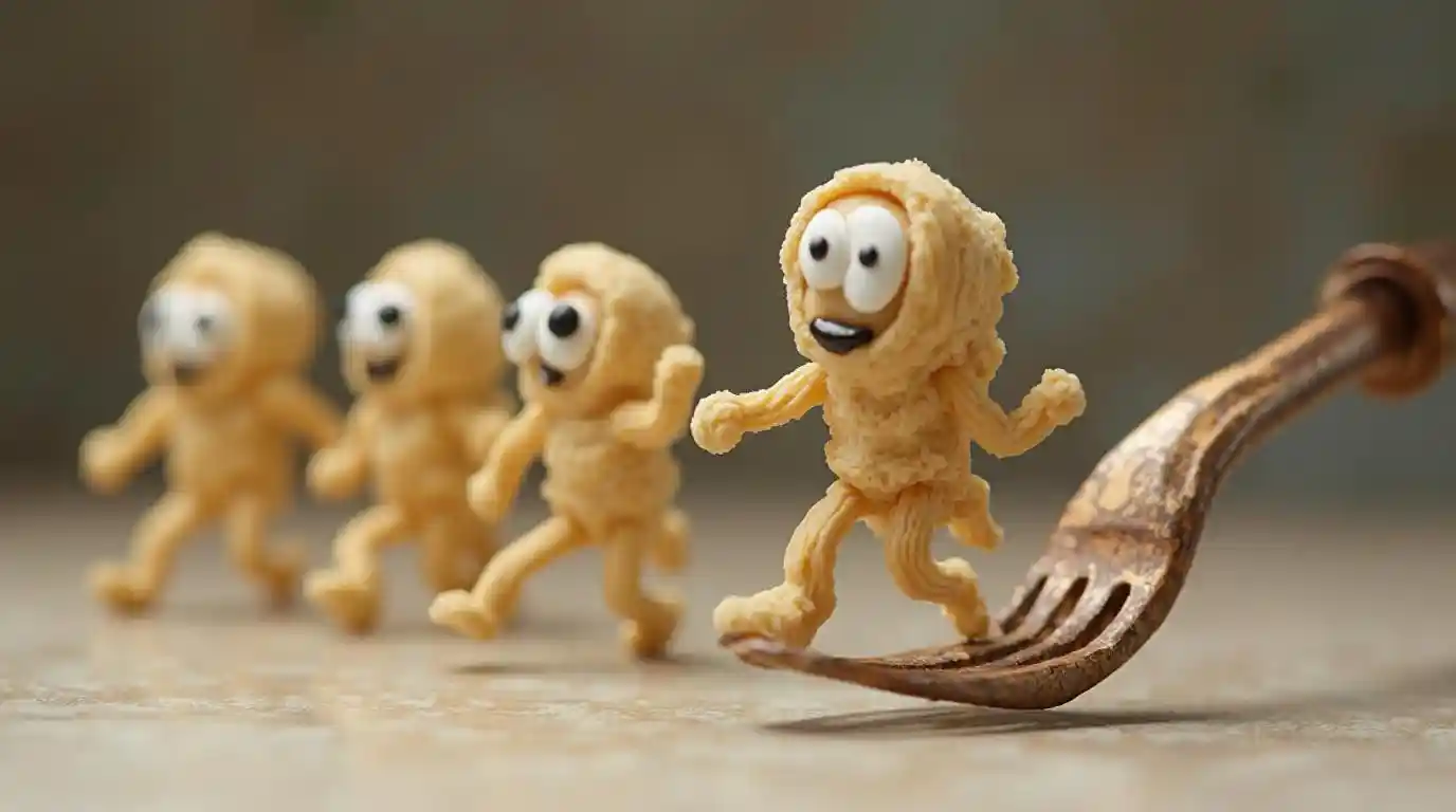 Dough Figures Fleeing from Fork
