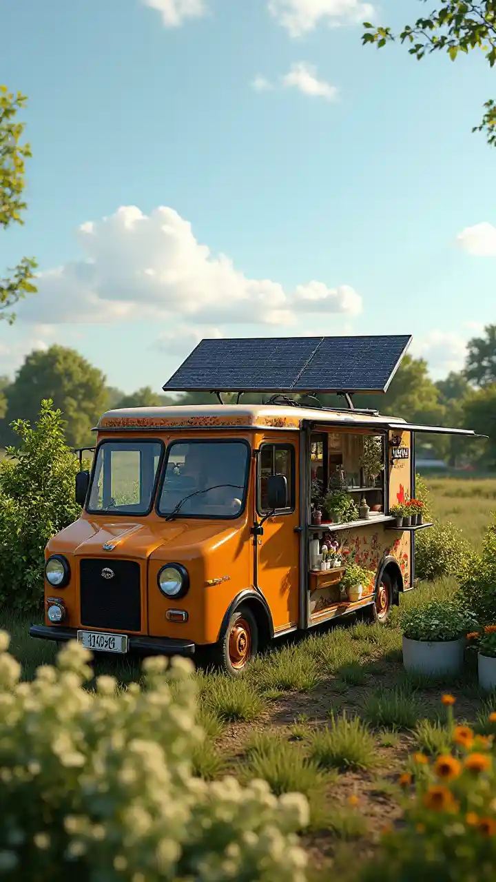 Sustainable Food Truck Utilizing Solar Energy and Greenery