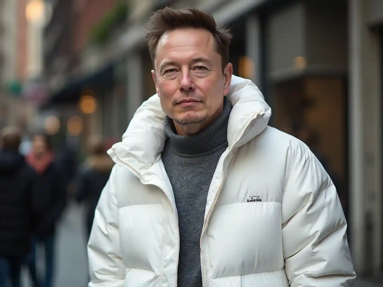 Elon Musk in White Puffer Jacket
