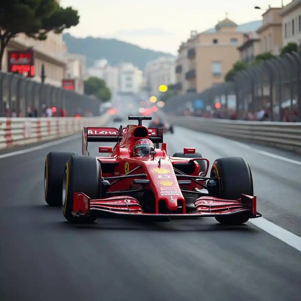Cooperphoto RAW, , ((best quality, 8K, Masterpiece: 1.3)), sharp focus: 1.2,、 Formula 1 racing, scuderia Ferrari、Monaco Grand Prix 、Ferrari F2001 racing at full speed