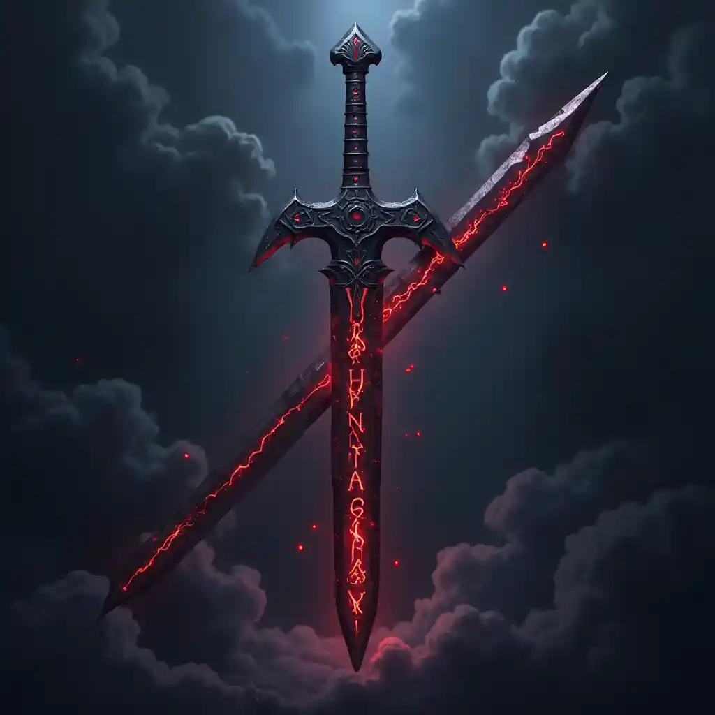 Highly Detailed Dark Enchanted Sword with Glowing Runes