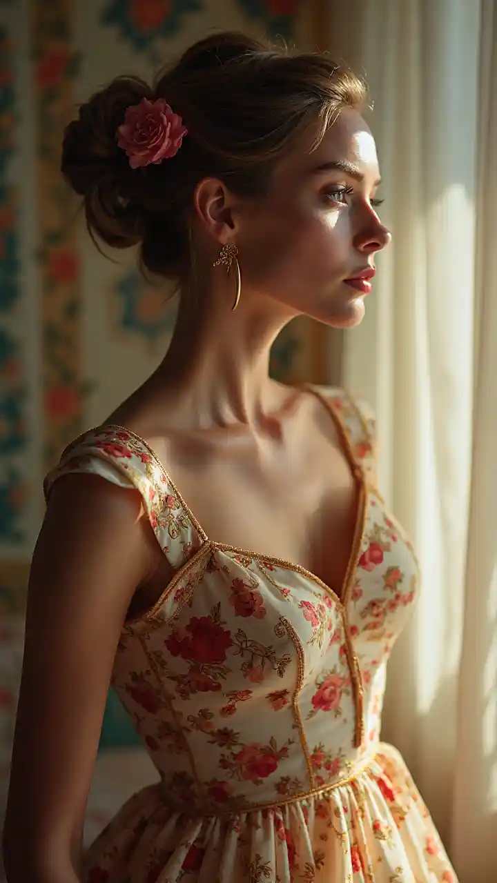 Jocelynfemale fashion model, faerietale couture, styled in D&G, dynamic light Style: Photographic